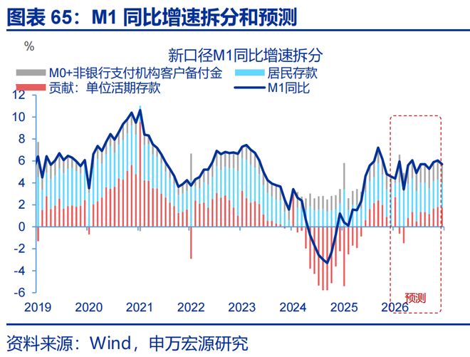 财政持续投入推动M1增速小幅回升,而M2增速在居民资产结构多元化背景下保持平稳。相较于2024年底,2025年10月新口径M1同比增速上升5.0个百分点至6.2%,主要受企业活期存款拉动。随着财政化债资金拨付和支出力度加大,2026年M1增速或小幅好于2025年水平。M2方面,因居民资产配置逐步多元化,其增速预计将保持稳定。